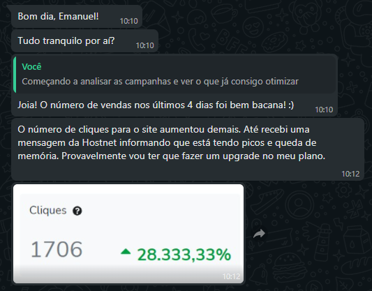 Esse cliente, em menos de 10 dias de me contratar como gestor de tráfego, conseguiu crescer os acessos do seu curso online, obter mais vendas e impactar com sua comunicação de vendas.